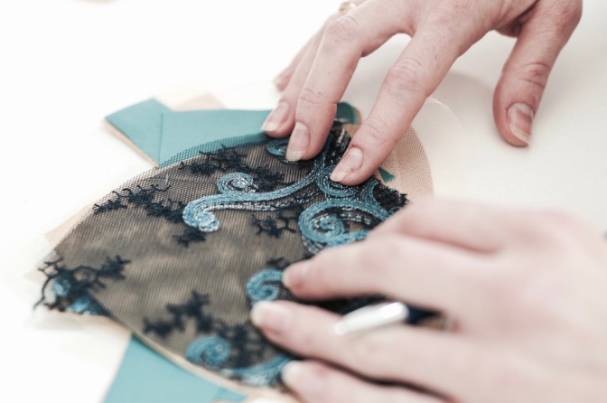 ランジェリーの要ともいえるエンブロイダリーレースは、フランスやスイスなどの一流の老舗メーカーから仕入れ、選び抜かれた素材を贅沢に取り入れています。柄と柄の斬新な組み合わせ、鮮やかなコントラストと独特でダイナミックな色使い、オリジナリティ溢れるデザインは身につけるだけで、別の世界へ連れていってくれそう。