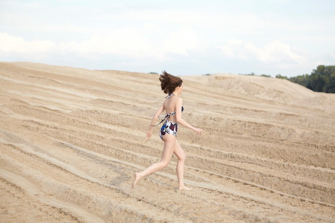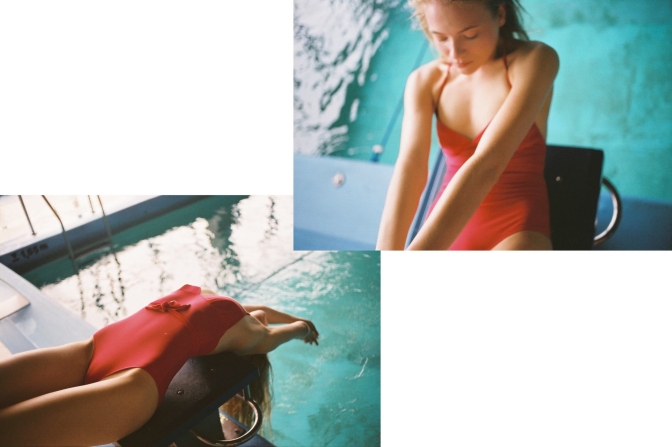 卒業制作では、幾何学模様の独特のテキスタイルや、靴の制作にも取り組んでいた彼女だが、大好きな夏の休暇時に、欲しい水着がみつからないーーそんな思いから、学生時代には挑戦していなかったスイムウェアのデザインに取り組んだという。いつの時代でもヴァカンスはあった。古いアルバムのビーチ写真、肌の露出が少ないワンピースやハイウエストのボトム。そういった50年代から70年代にかけてみられたクラシックなスタイルに、素材感やカット、細かなディティールを現代におきかえ、新しいレトロ感覚のスイムウェアが誕生した。素材はすべてイタリア北部産。そして、ポーランドの繊維産業の町として知られる、ウッジの縫製室でつくられている。