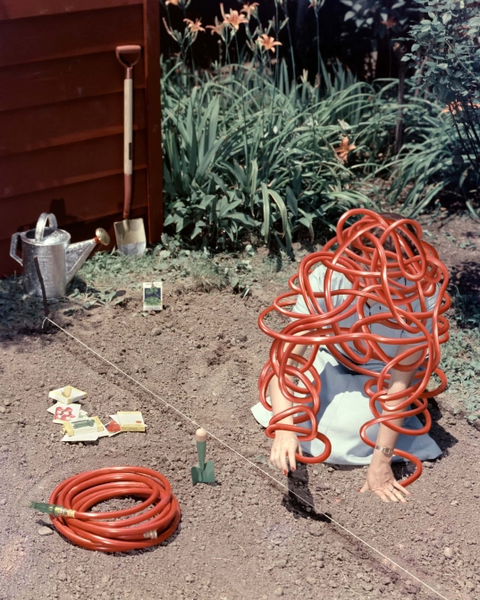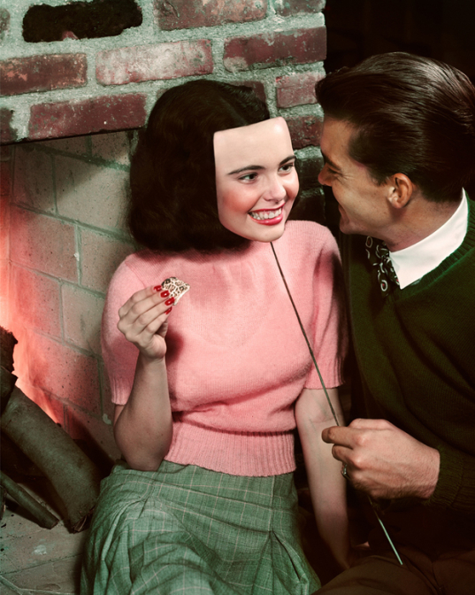 半世紀前のアーカイブ写真をみると、完璧な家族やカップルの写真を見ることができる。たとえば、男性は仕事から戻り、ディナーはすでに用意され、子供たちは礼儀正しく、家庭での女性は完璧に見える。彼女はそのイメージを意図的に台無しにし、再編成することでステレオタイプを打破する。more info