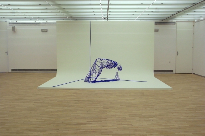 Olaf Brzeski / The fall of man I don’t like”,2012 painted steel / 2013 video 16 mm