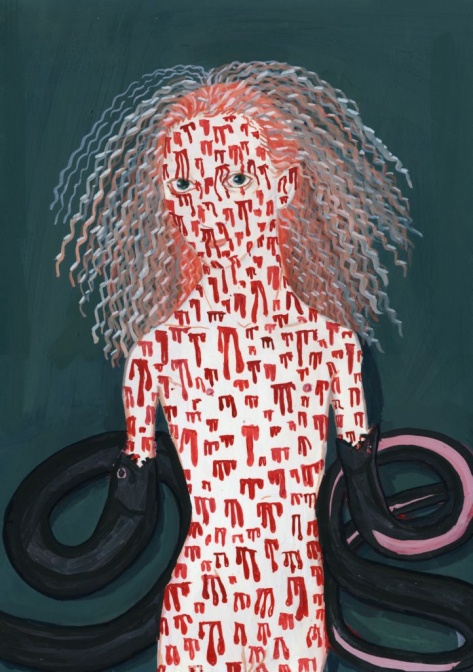 エヴァ・ユシュケヴィッチ Ewa Juszkiewicz :1984年、ポーランド・グダンスク出身 :絵画・デッサン・インスタレーション・アニメーション :奇妙にゆがんだ肖像画、奇妙なマスクや怪奇なフォルムに変形した顔は仮面舞踏会に迷いこんでしまったかのよう。人間の心の奥に潜む内側の部分をグロテスクに描き、最新作では古典的な絵画やデッサンを再解釈している。